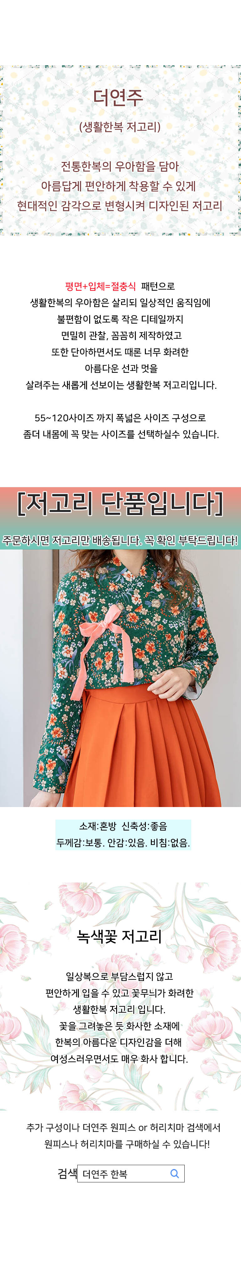 HOME > 여자 생활한복 > 저고리 > 녹색꽃 저고리