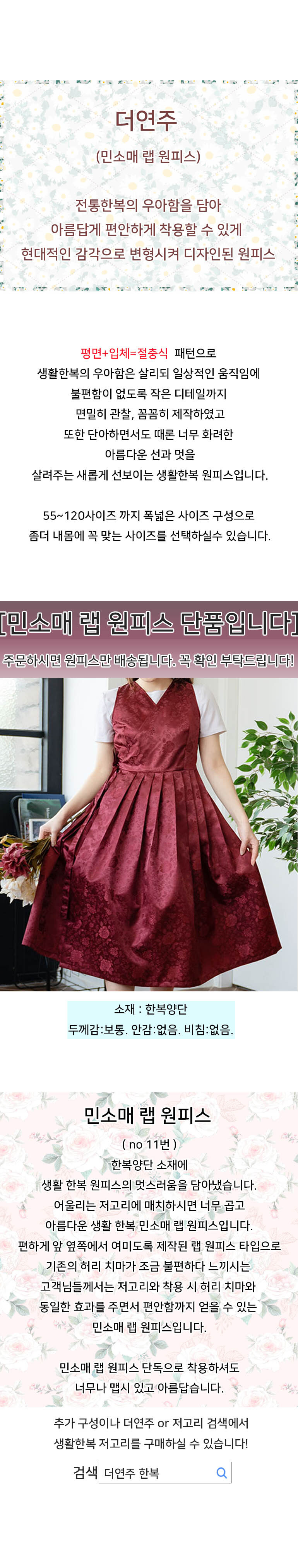 HOME > 여자 생활한복 > 민소매 원피스 > 민소매 랩원피스(11번)