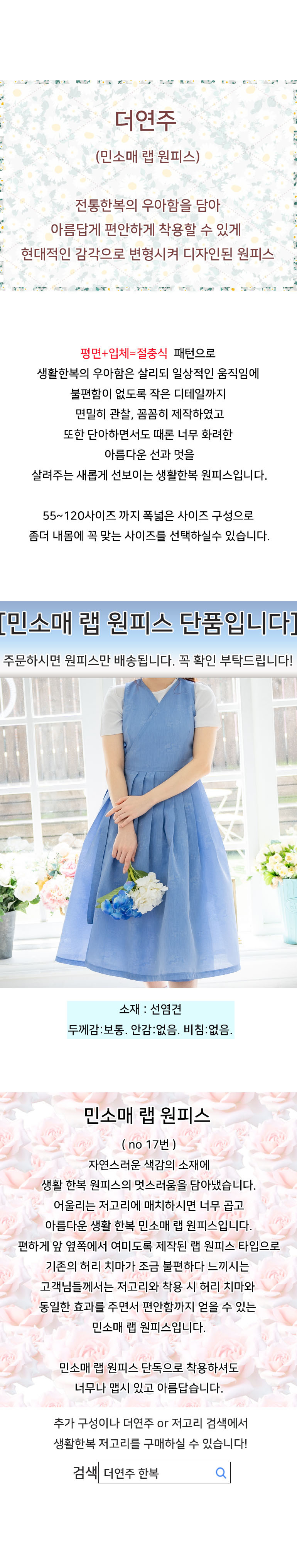 HOME > 여자 생활한복 > 민소매 원피스 > 민소매 랩원피스(17번)